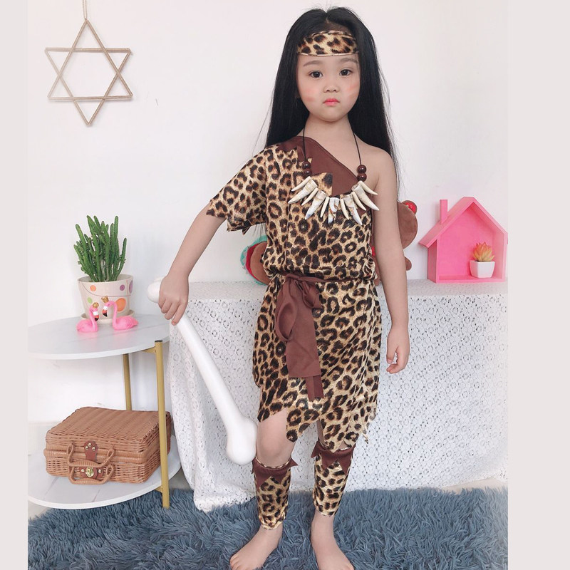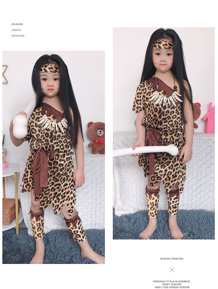 Дети леопардовые африканская дикая индийская индийская примитивная танцевальная одежда Король звонит мне, чтобы посетить охотники за горами