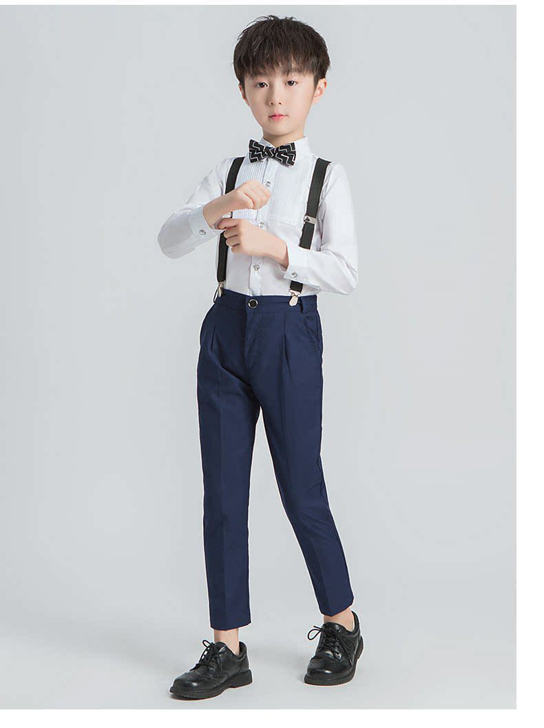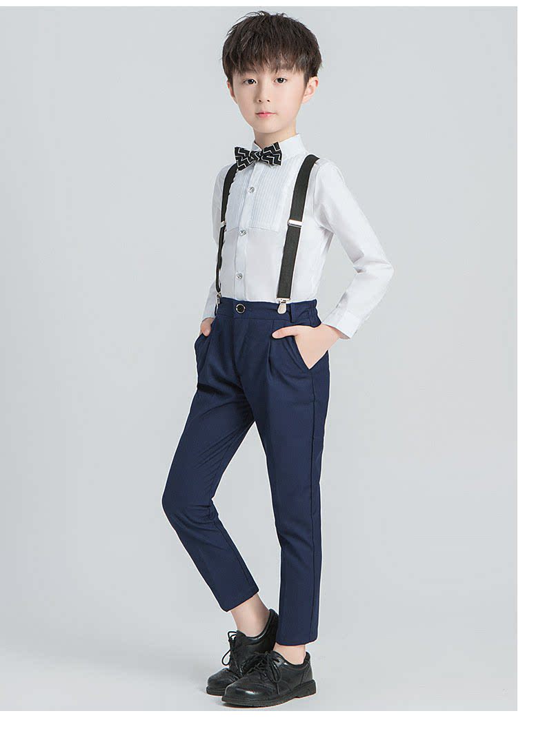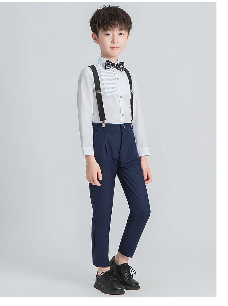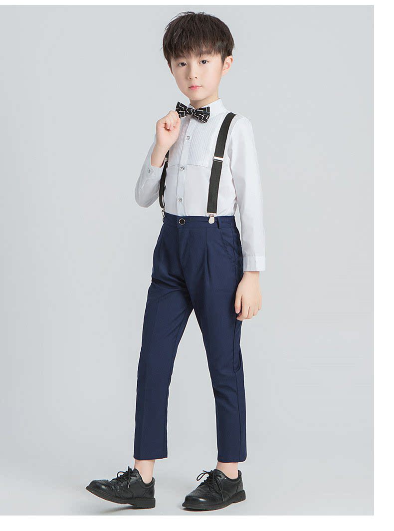 - Синие подтяжки для мальчиков, штаны, рубашка, галстук-бабочка