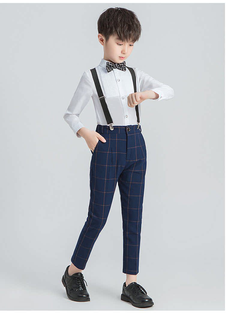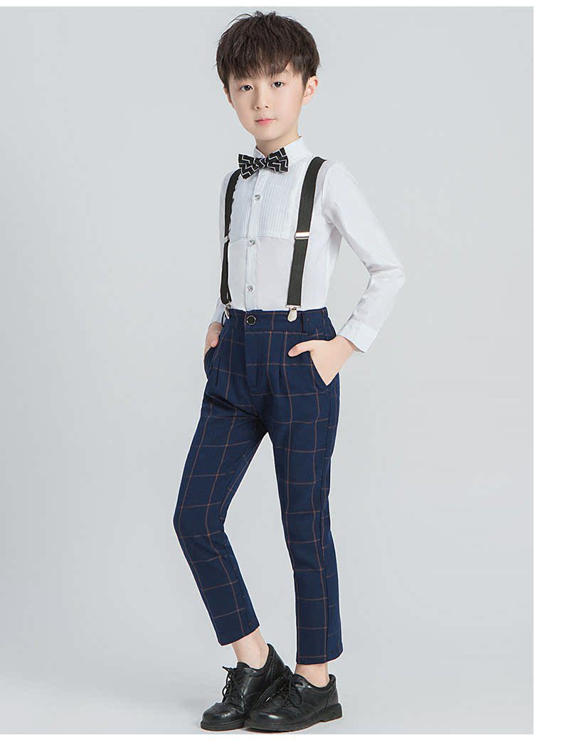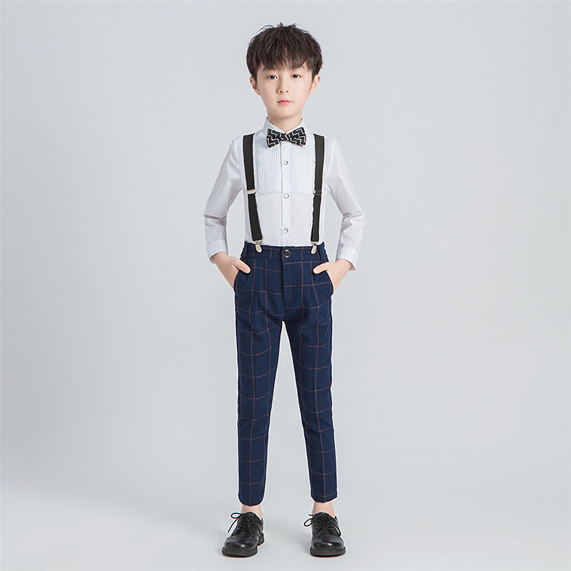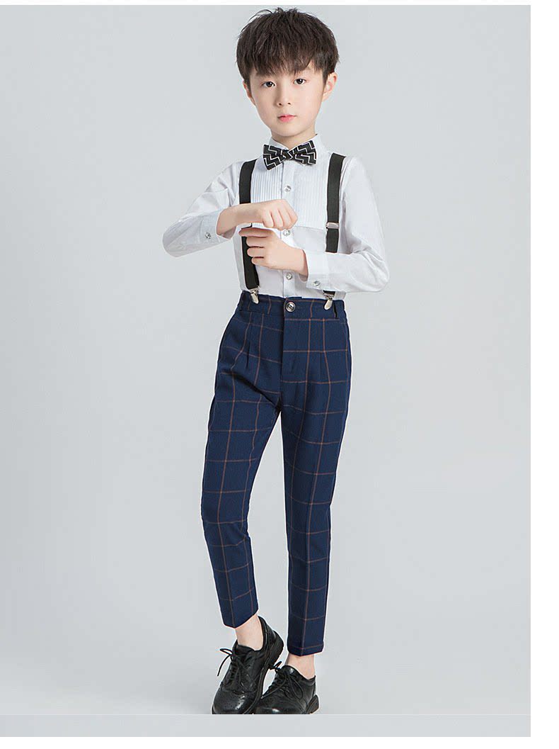 - Синие подтяжки для мальчиков, штаны, рубашка, галстук-бабочка