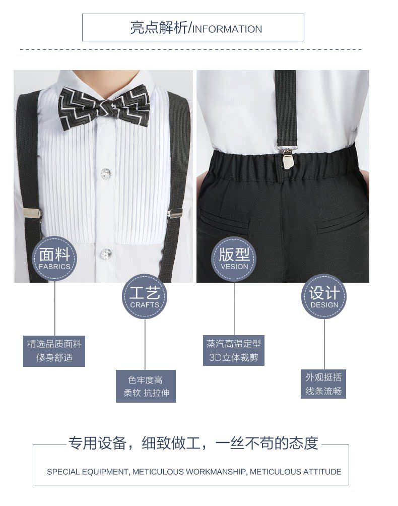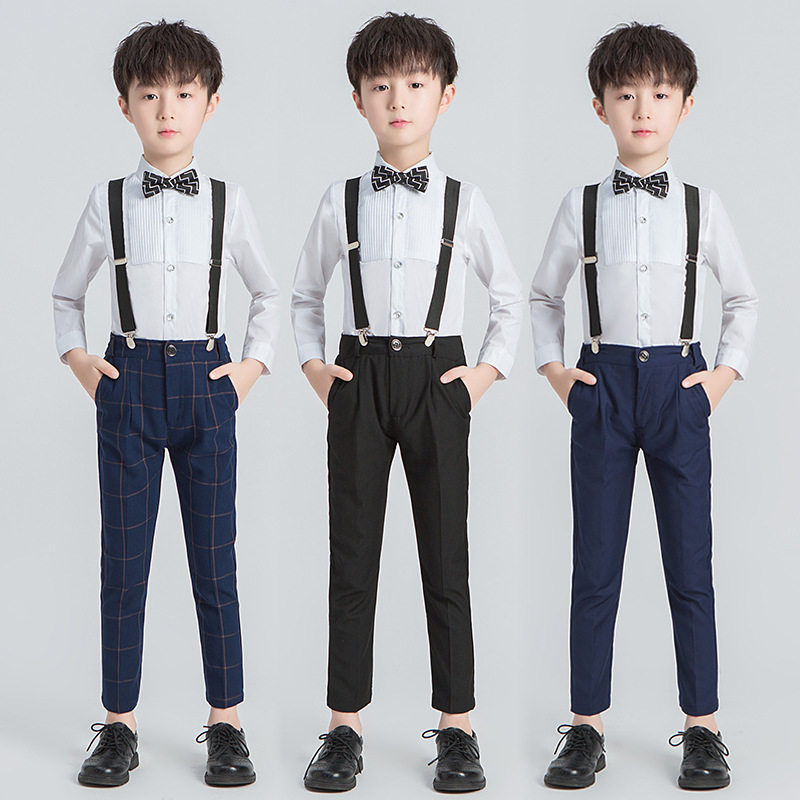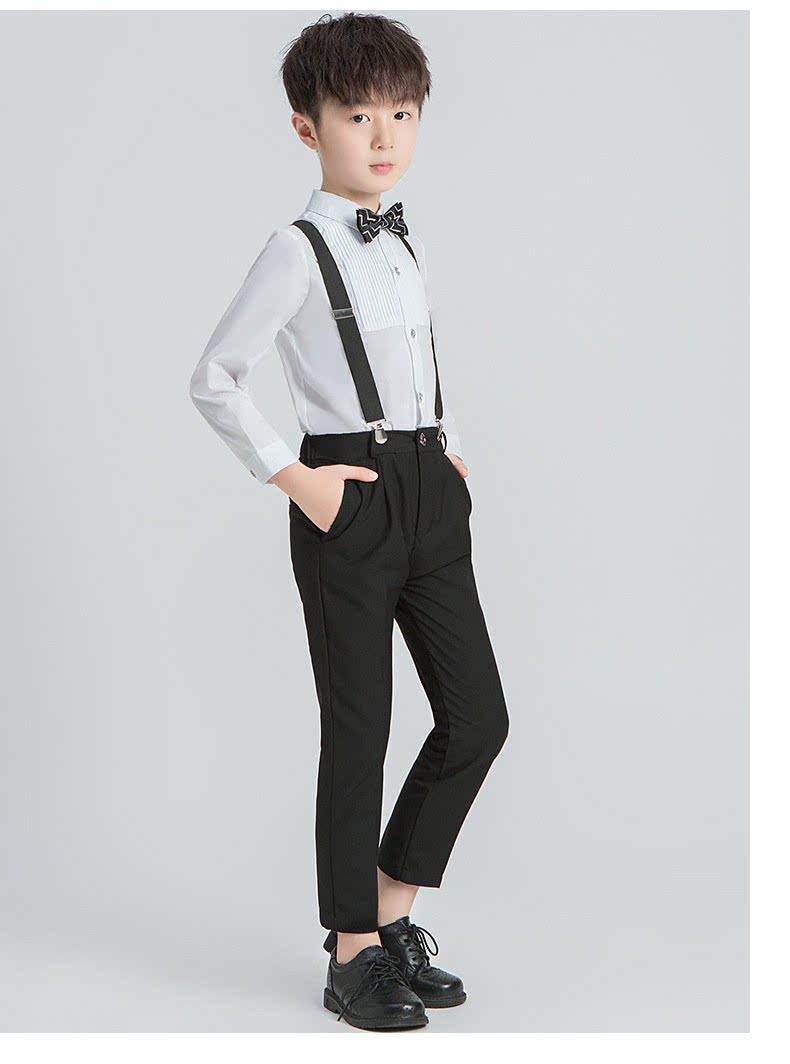 - Черные подтяжки для мальчиков, штаны, рубашка, галстук-бабочка