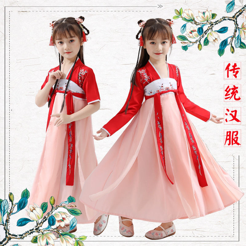Девочки Ханфу Ци котлет юбка супер сказочная маленькая девочка юбка костюма фея детская ретро Тангу -Гифенг Детский лето