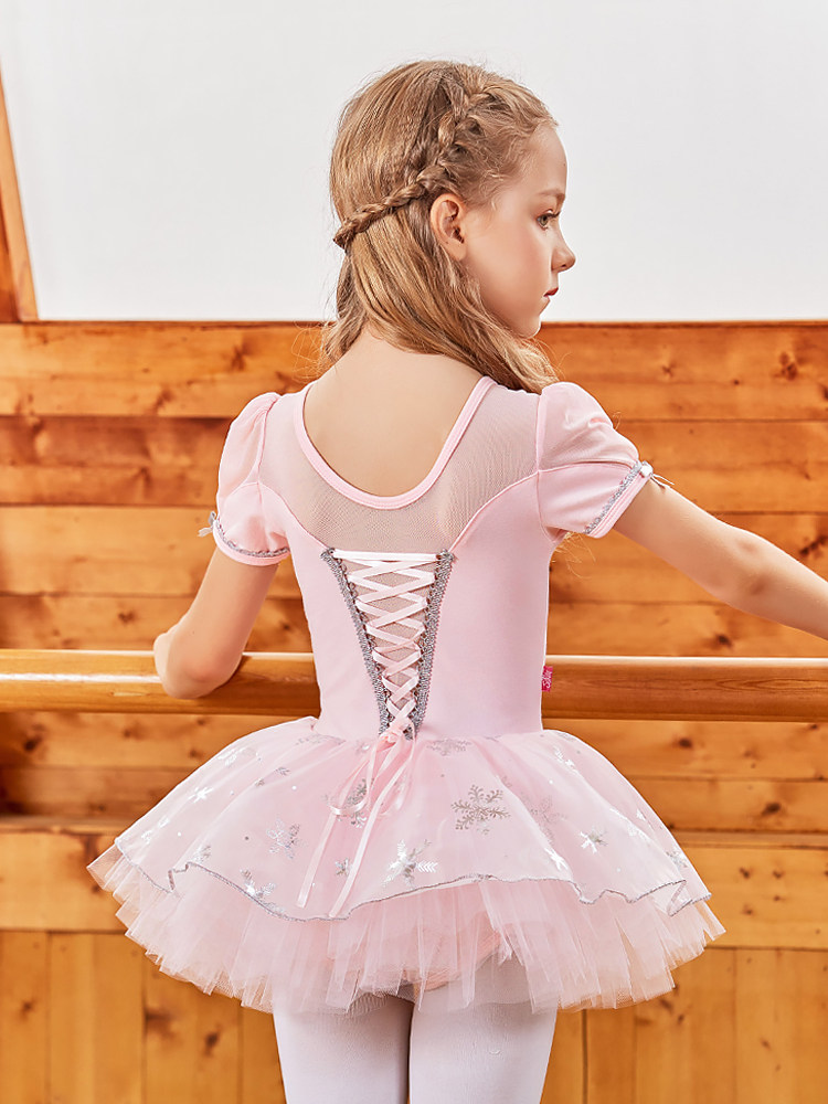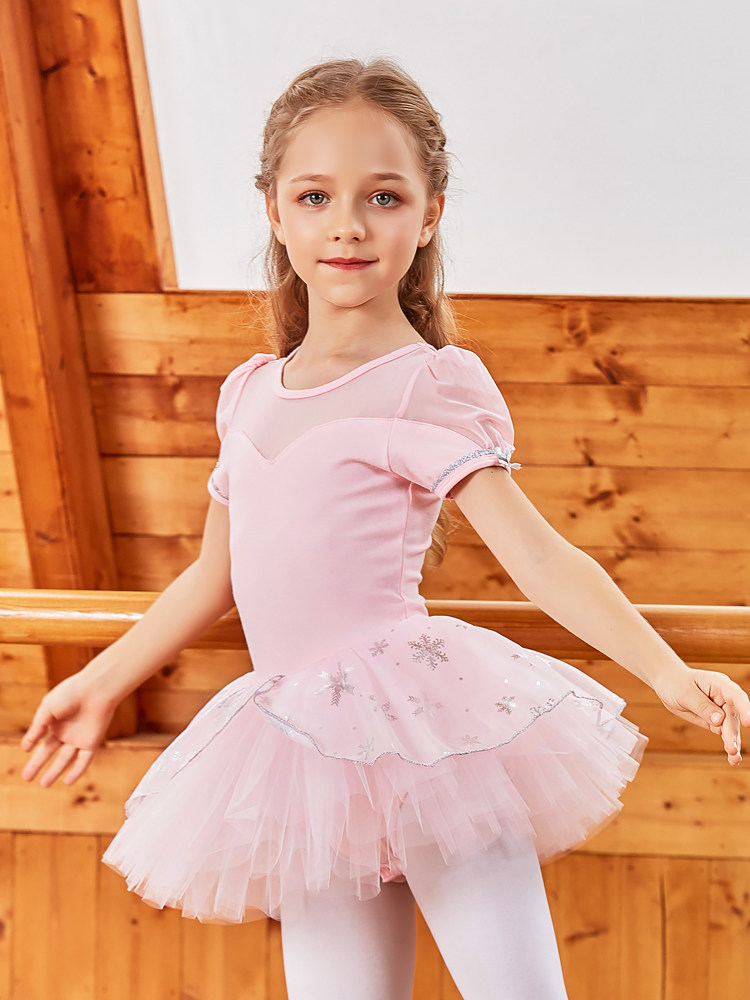 Покупка товаров Летняя детская танцевальная одежда из чистого хлопка, тренировочная одежда с короткими рукавами для девочек, одежда для выступлений малышей, пачка принцессы Эльзы