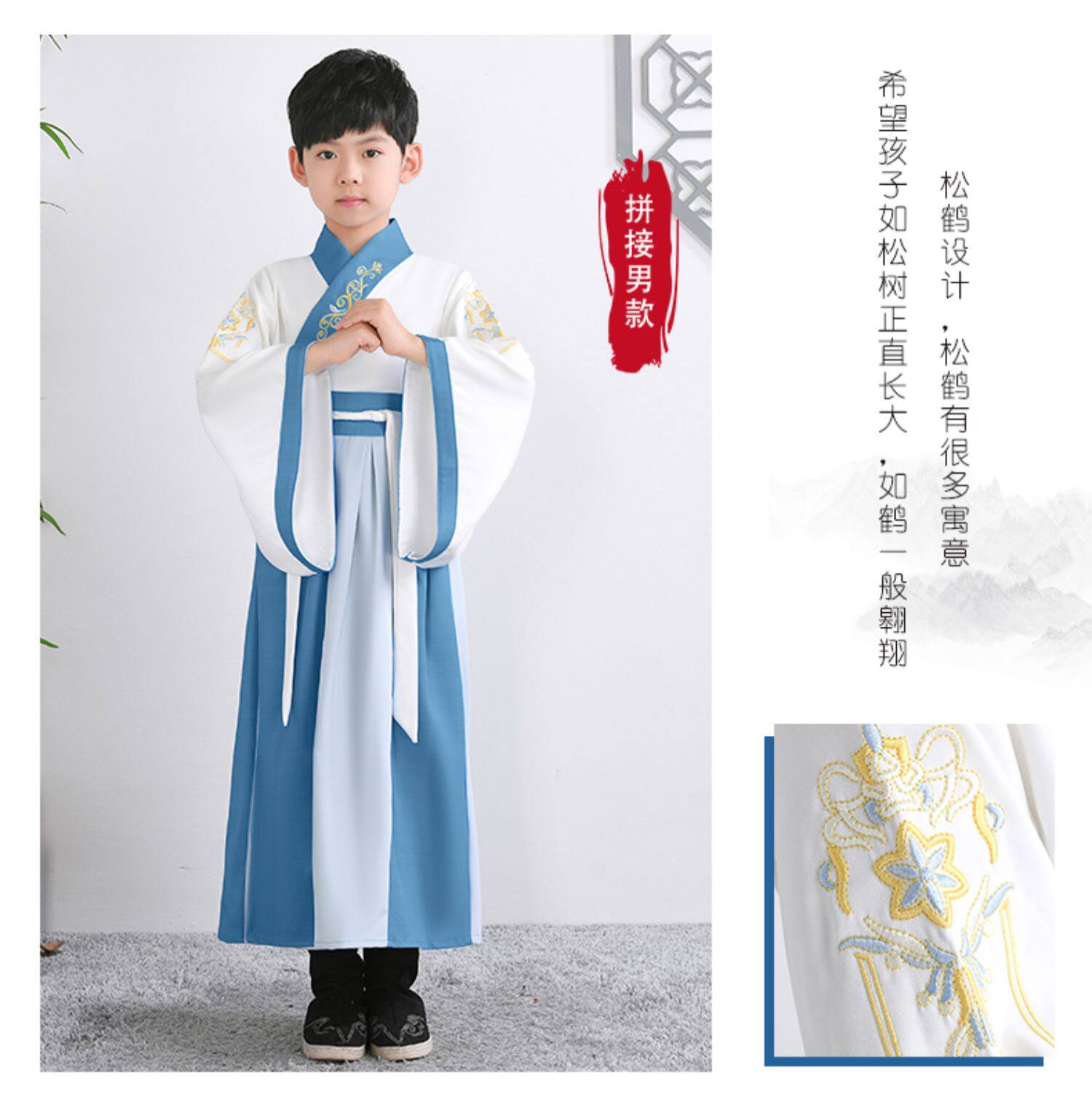 Детское ханьфу подходит для мужчин и женщин, костюм мальчика цветочника, китайский стиль