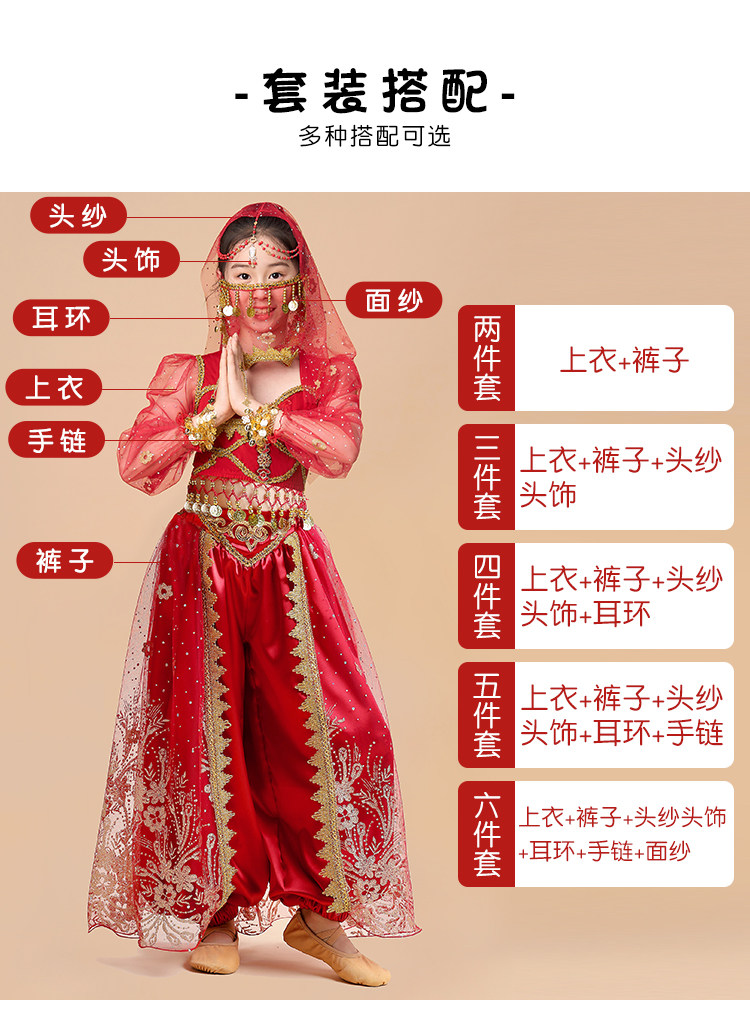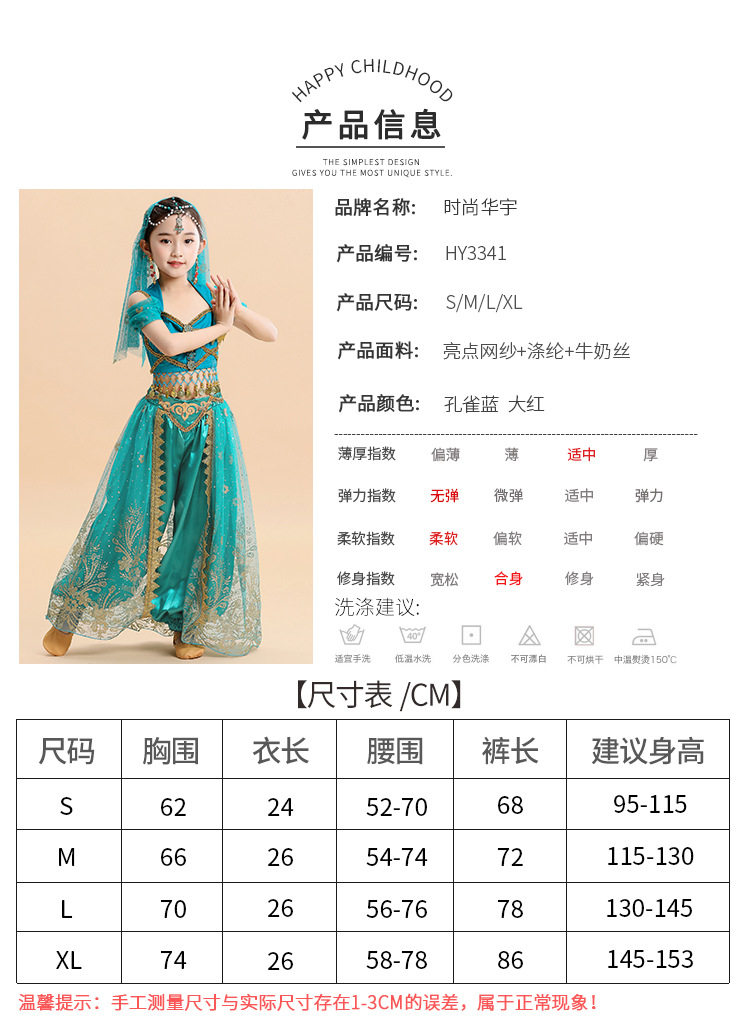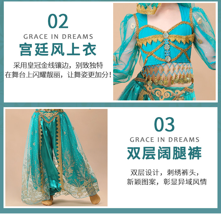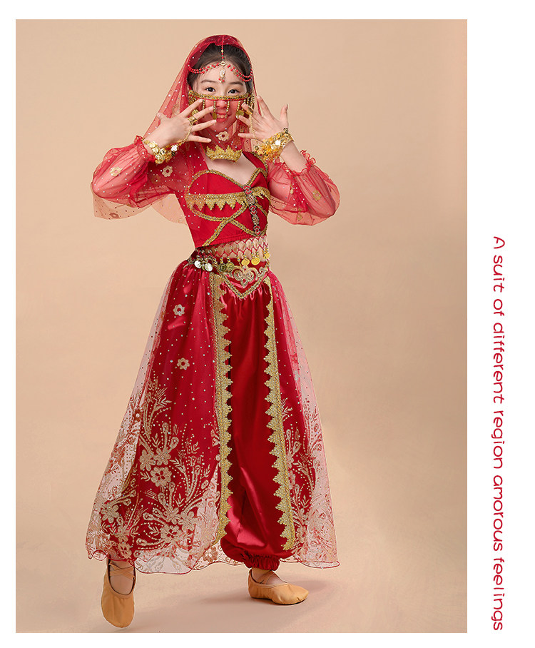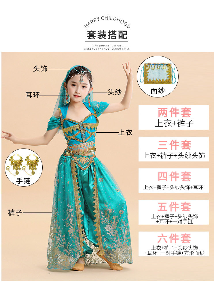 Детский живот Новая Жасмин Принцесса Одежда индийская танец Вествуд Дэн Джи Дюнхуанг Cos Six -1 Служба исполнительской команды