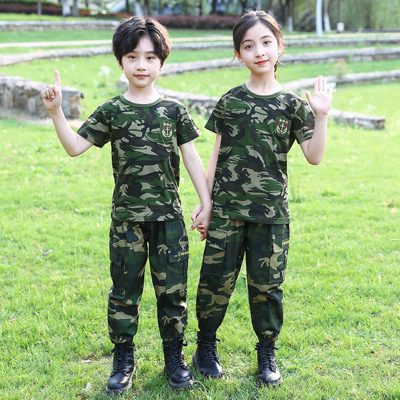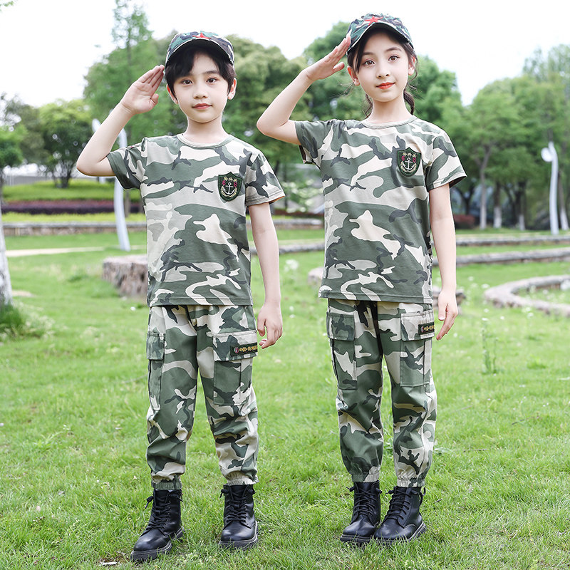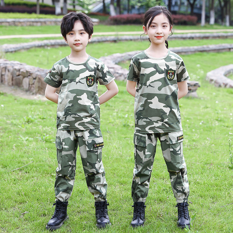 Детский камуфляжный летний комплект для мальчиков, костюм для школьников и студентов, короткий рукав