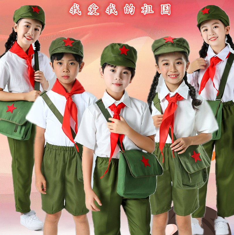 Детская маленькая красная армия мужчина и девочка -дети Чжи Цингхуай Старики Учитеет блестящую красную звезду Красную Звезду
