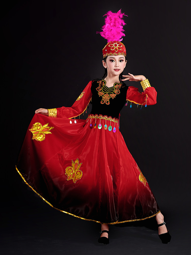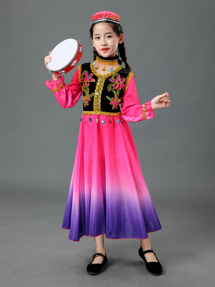 Детские уйгур Синьцзян Танцевание Маленькая Гули Национальный танец Счастливый барабанный меньшинство