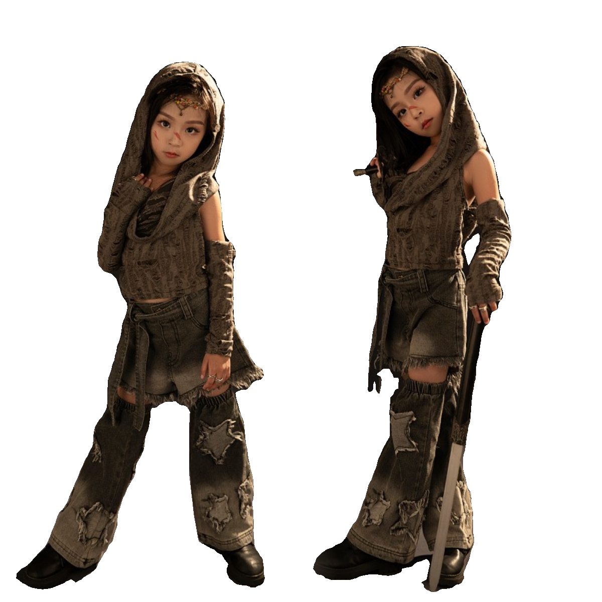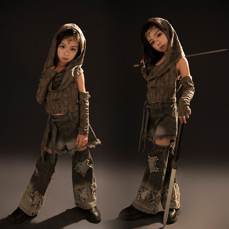 Девочки новые песчаные дюны Тенденции Терминал Терминал Терминал Ретро Шоу Ретро Вестерн Деним Детский панк модель панк -автомобиля Рыцарь