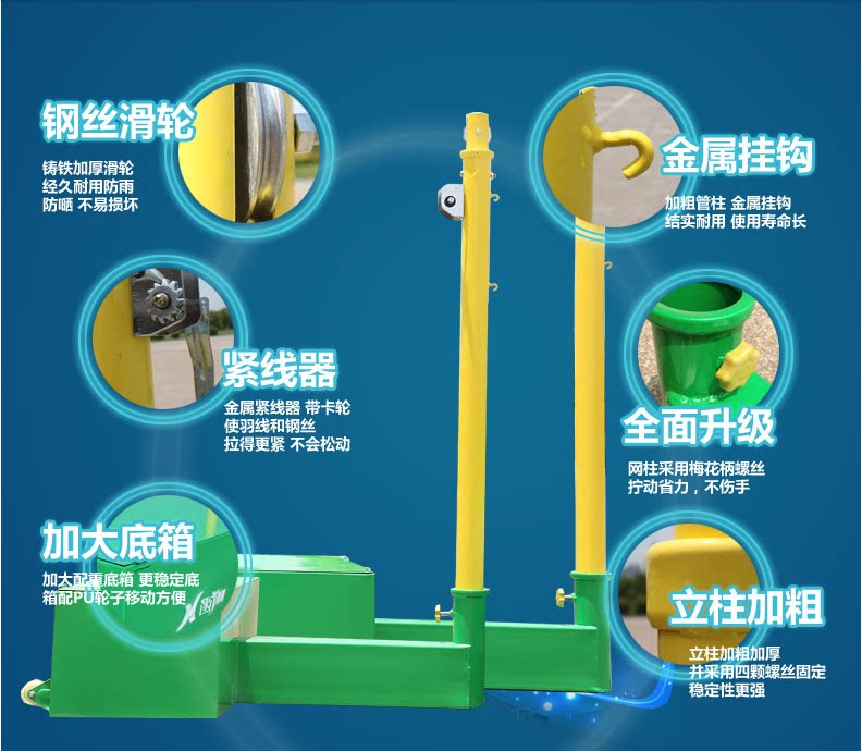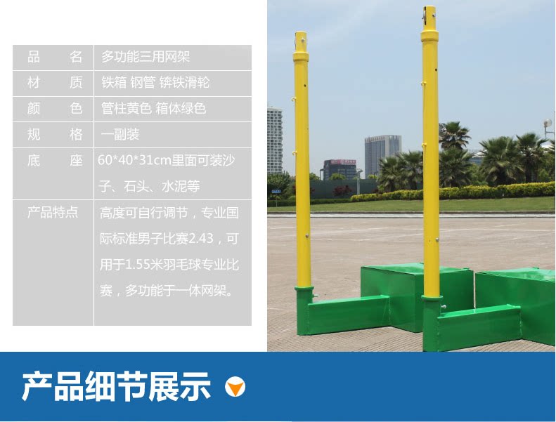Рычай между основным полюсом колонны шарика и основанием:Две высококачественные круглые стальные трубы образуют три типа треугольника с главным стержнем, чтобы обеспечить стабильность всего колонны бадминтона.
