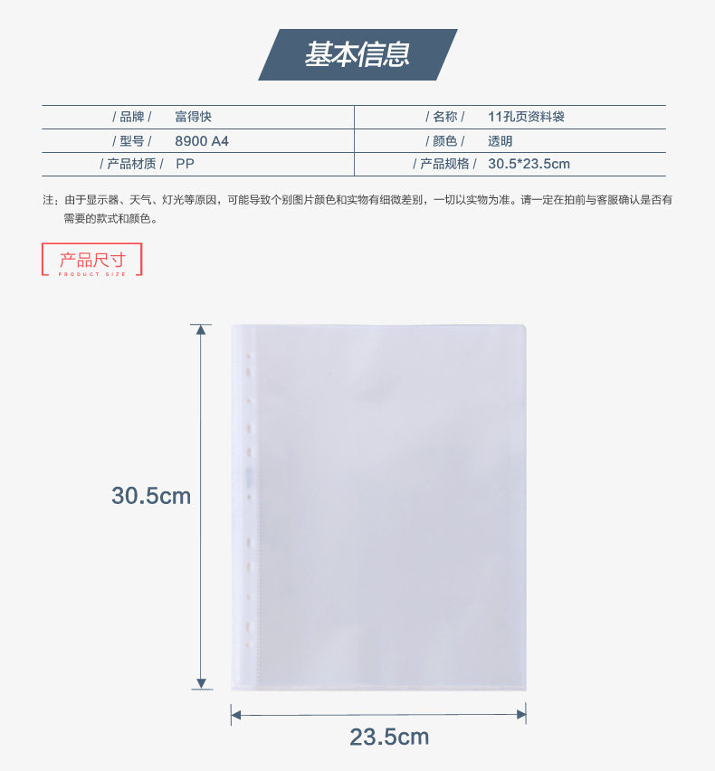 Fast F8900/A 11 -Hole Live Page Bag Data A4 Live Page Page Transparent File Bag Satch Sage Bag/Set