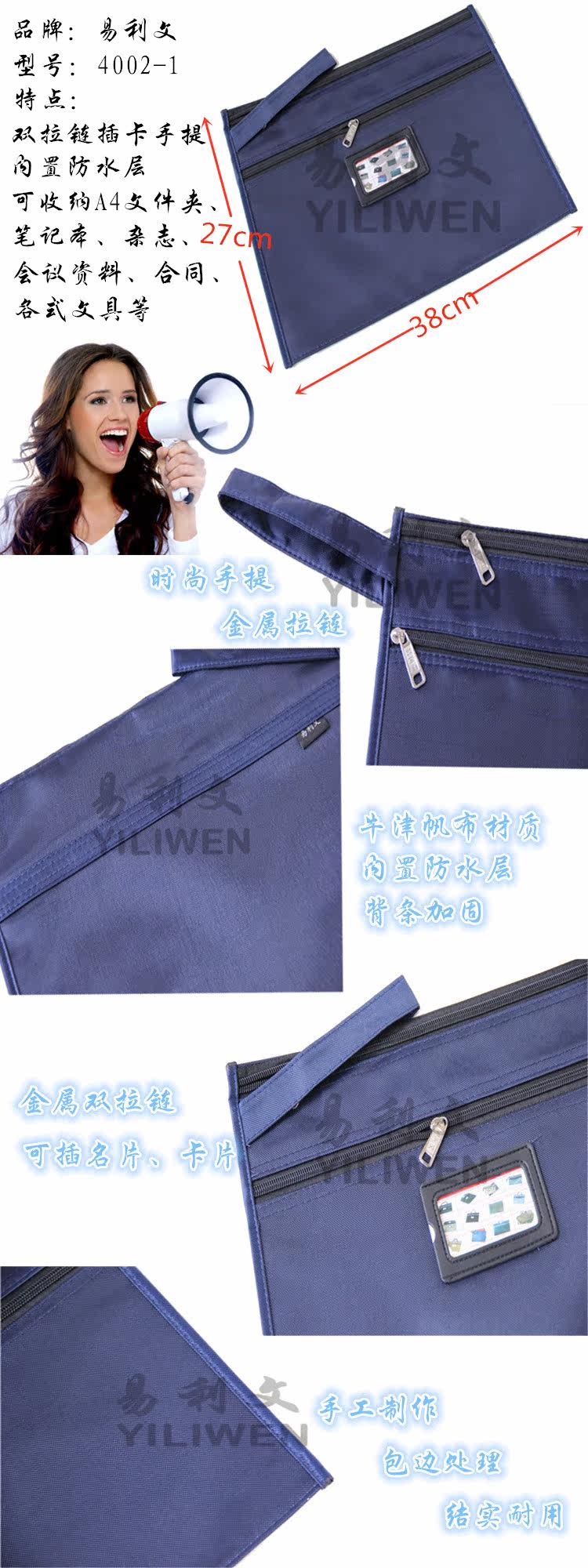 Yiliwen Gongwen Bag Bag Ink Blue File Bag 4002-1