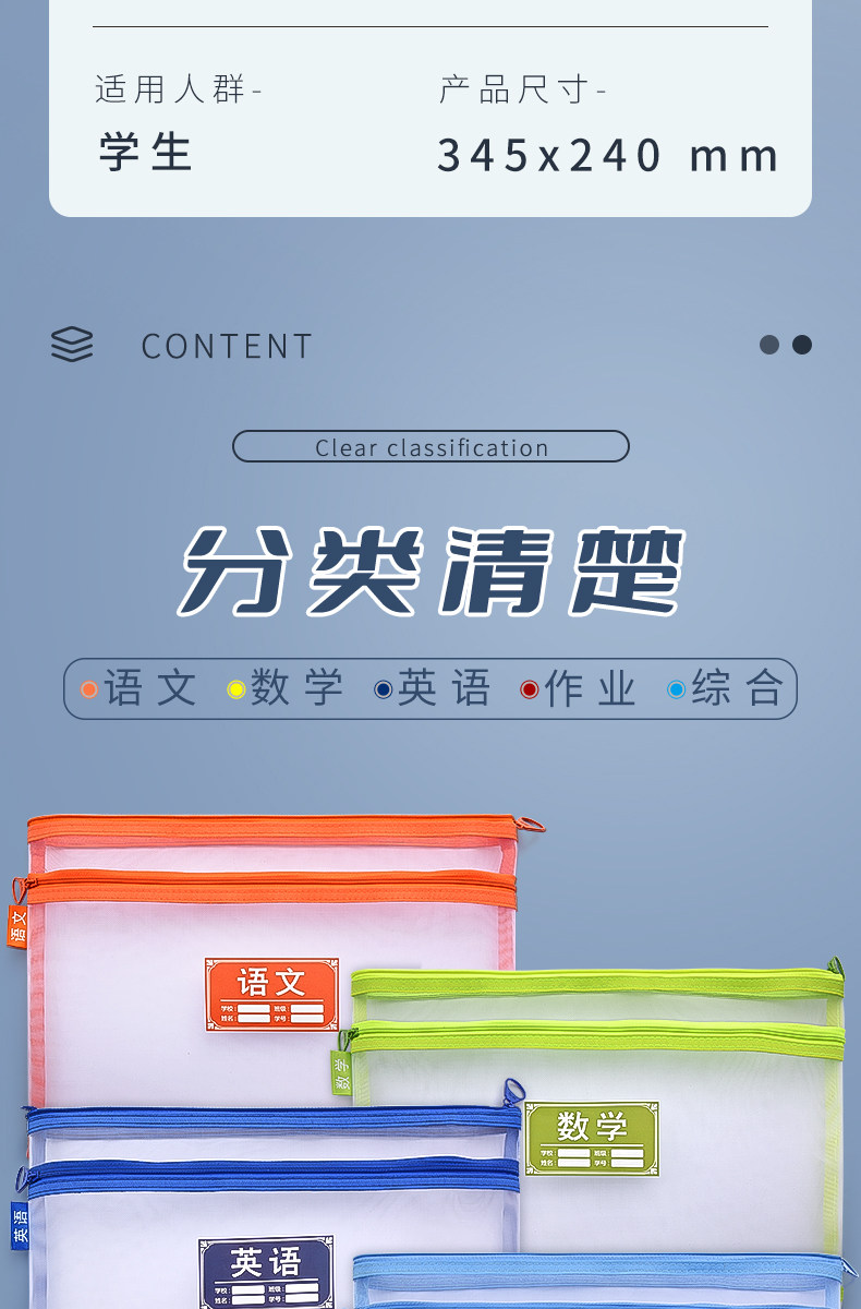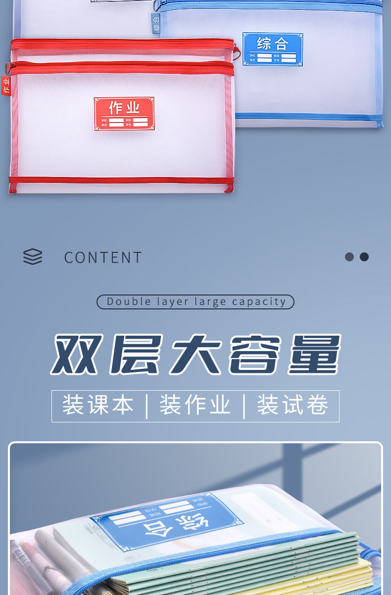 Сумка для хранения для папок для школьников с молнией, двухэтажный пенал, обучающий портфель для первого класса, сортировка