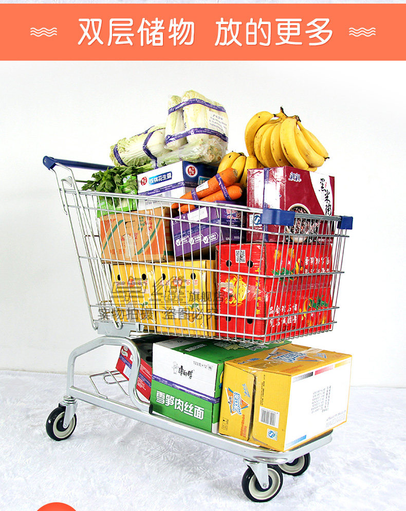 Корзина для покупок, металлическая двухэтажная тележка для домашнего использования