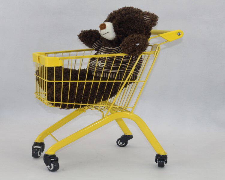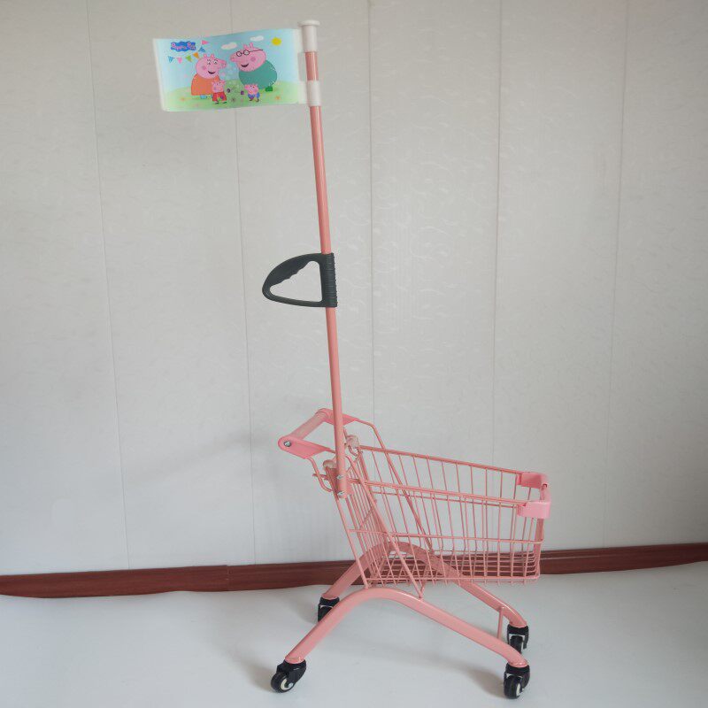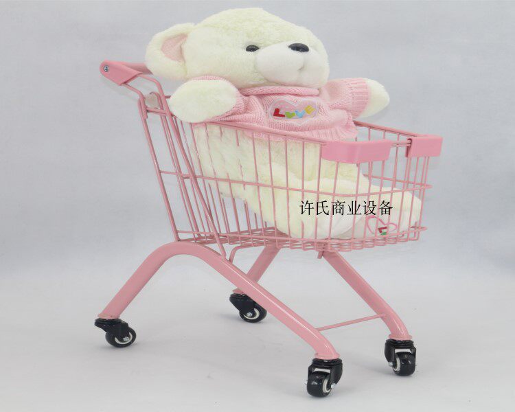 Маленькая розовая металлическая детская тележка