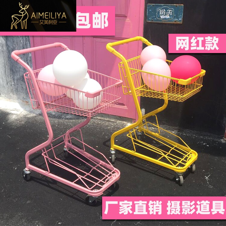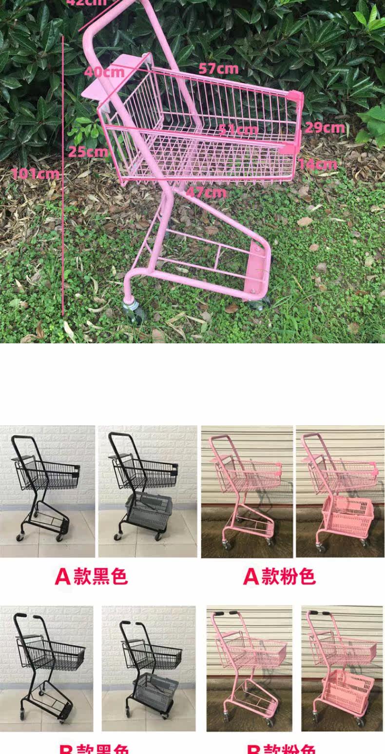 Розовая двухэтажная корзина для покупок для домашнего использования, тележка, подходит для караоке-баров, популярно в интернете