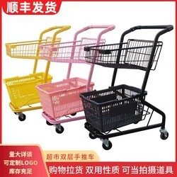 Универсальная тележка, двухэтажная розовая корзина для покупок для домашнего использования, популярно в интернете