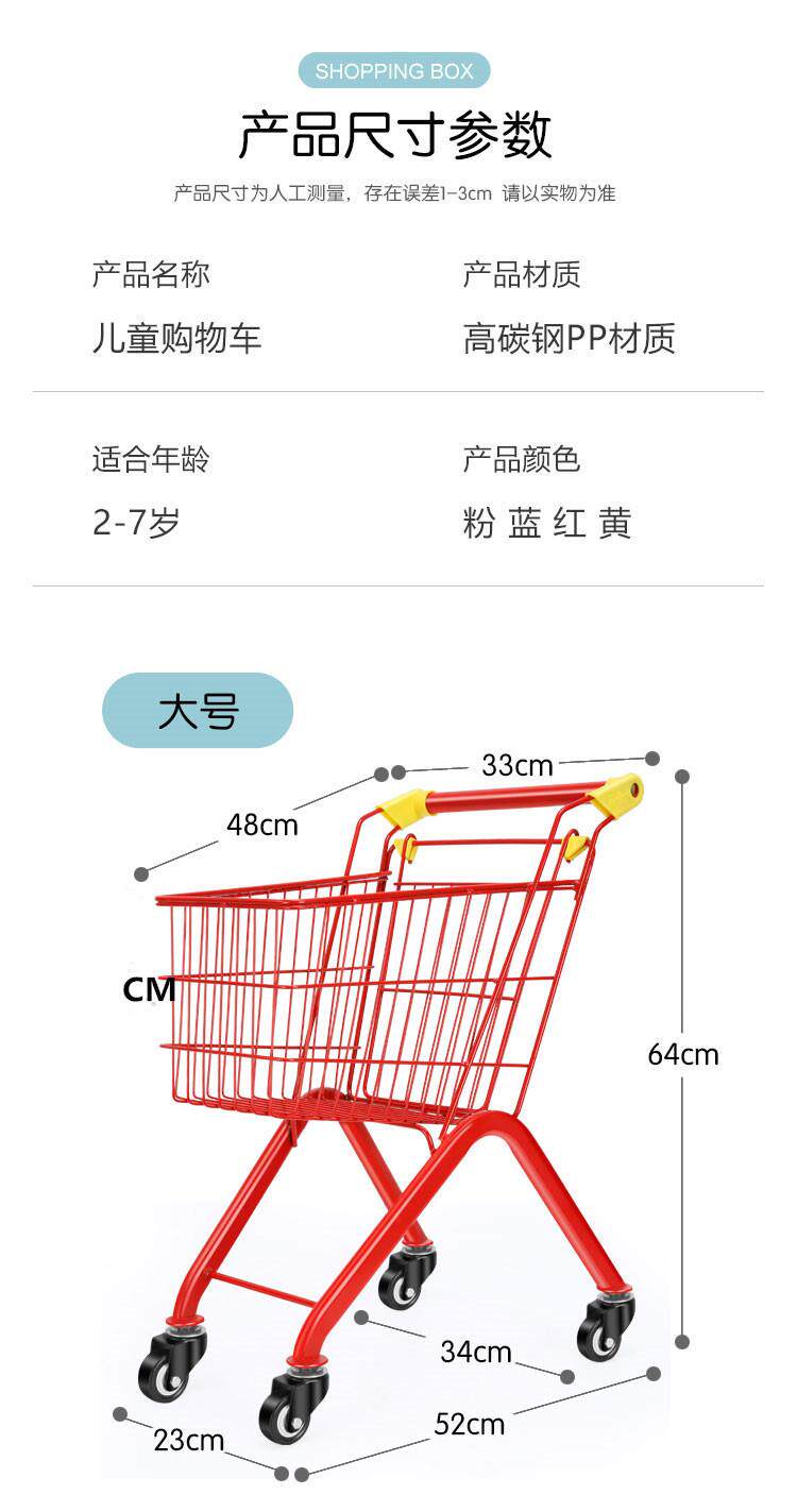 Большая детская корзина для покупок, металлическая портативная семейная тележка, 1-6 лет