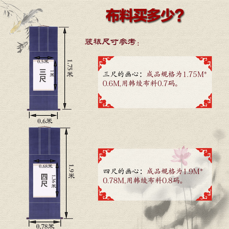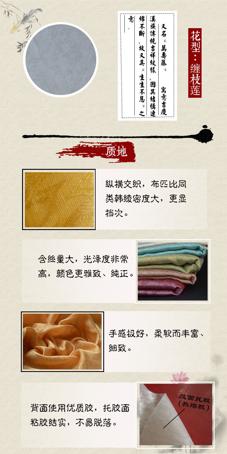 Mounting material Jinya with glue Han 绫 绫 装 mounting painting, decorative 绫 绫 83CM machine mounting guidance technology