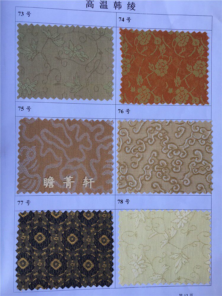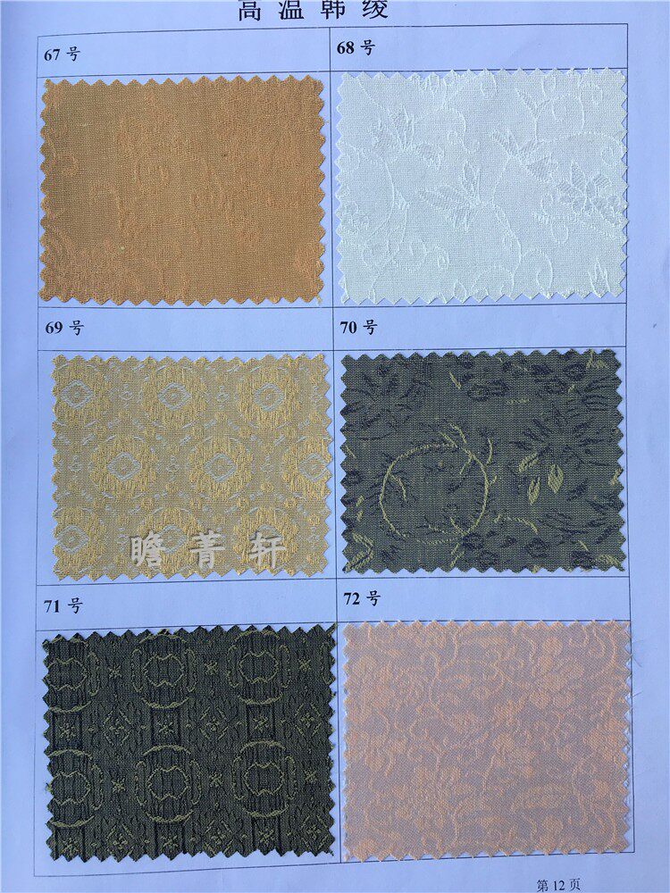 [Цвет]; Белый, молочно-белый, бежевый. Инху (зеленый утиного яйца), светло-серый, серебристо-серый, темно-серый, ароматно-серый, верблюжий, ярко-желтый (буддийский желтый), ярко-красный, золотая орхидея, светло-кофейный, кофейный, оранжевый (оранжево-зеленый), чайно-зеленый, темно-зеленый, темно-бронзовый, светло-бронзовый, фарфорово-зеленый, коричневый ярко-зеленый, синее золото, черный ярко-желтый, охристо-желтый, белый полотняное переплетение, молочно-белое полотняное переплетение, светлое античное полотняное переплетение, темно-античное полотняное переплетение, фарфорово-зеленое полотняное переплетение, кофейное полотняное переплетение, каштаново-коричневый, все цвета и узоры в комплекте, а различные узоры и цвета могут быть настроены, если вы хотите больше