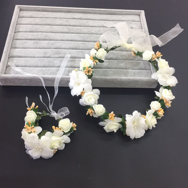 Детский аксессуар для волос, повязка на голову, цветок на запястье, платье, в корейском стиле