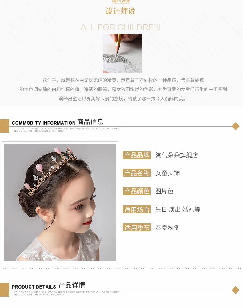 Детская розовая тиара, ободок, аксессуар для волос, для подиума