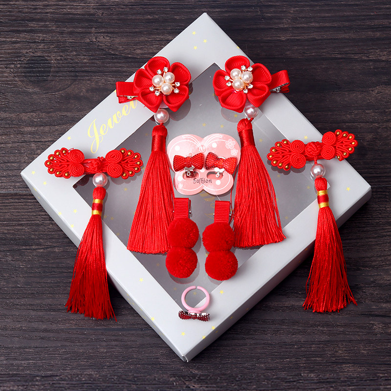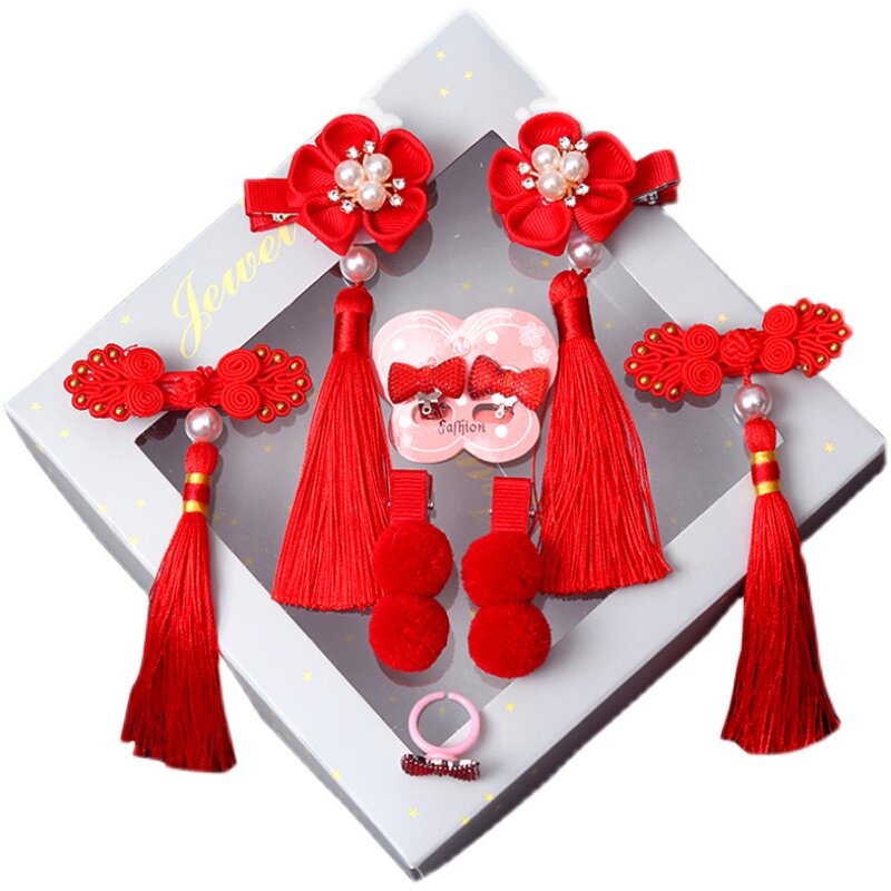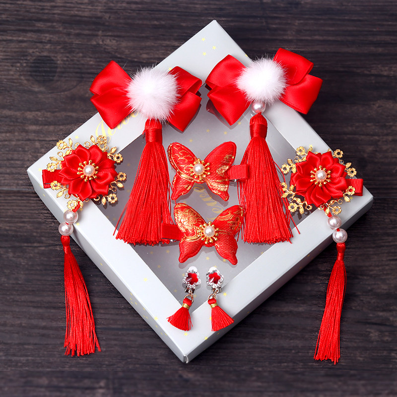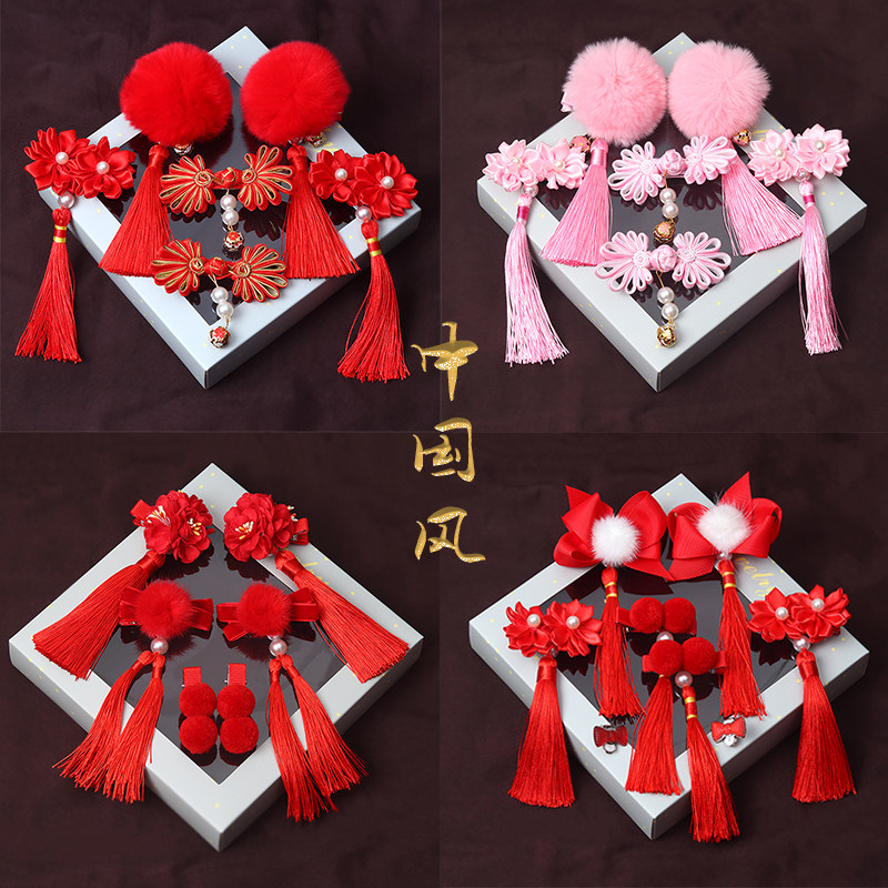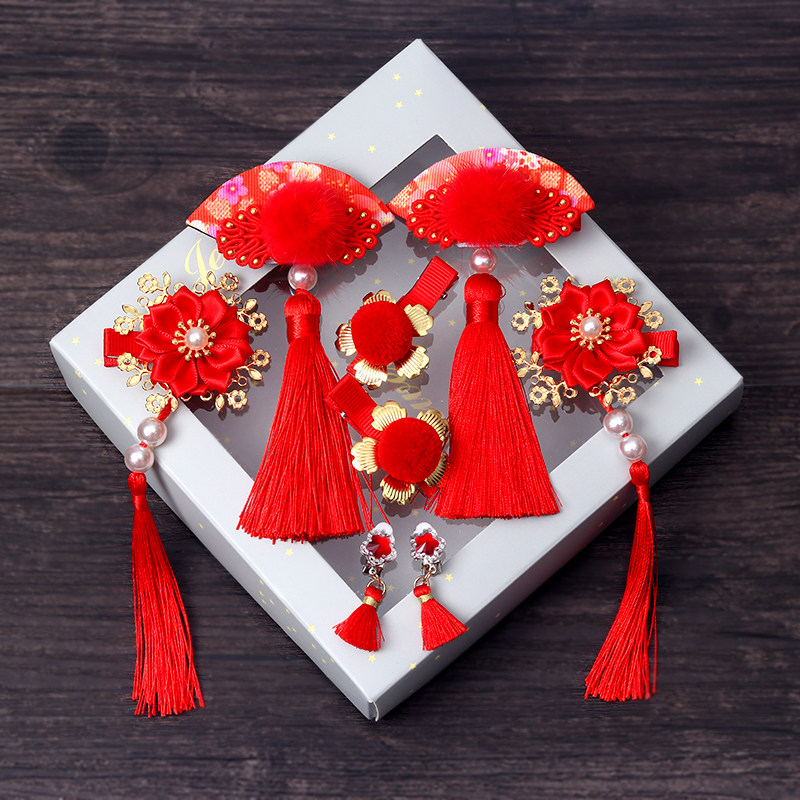 Детский красный аксессуар для волос, заколка для волос с бантиком, детские шпильки для волос с кисточками, китайский стиль