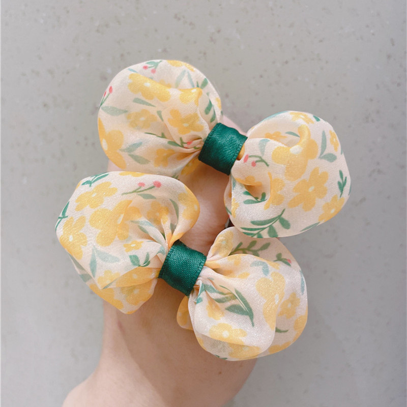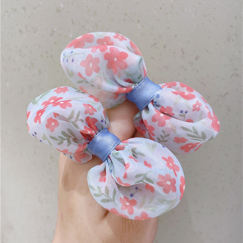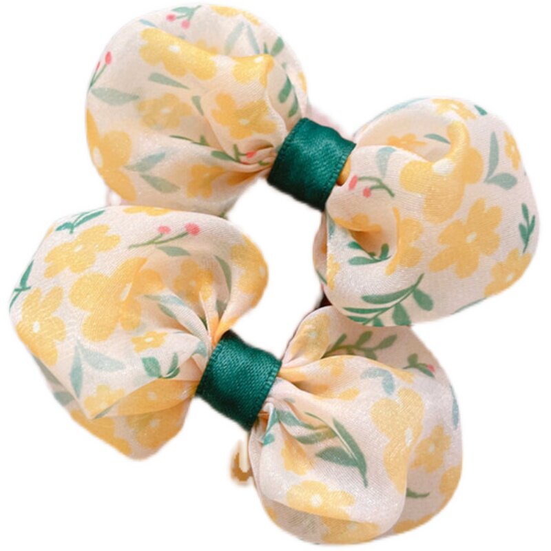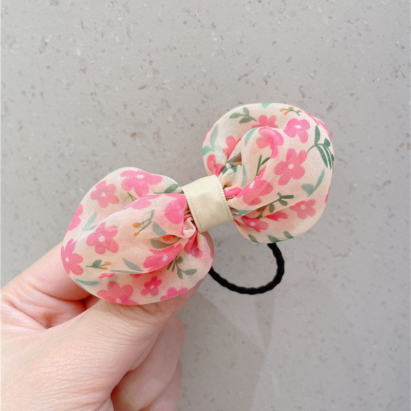 Качественная детская свежая резинка для волос с бантиком ручной работы, аксессуар для волос, цветочный принт