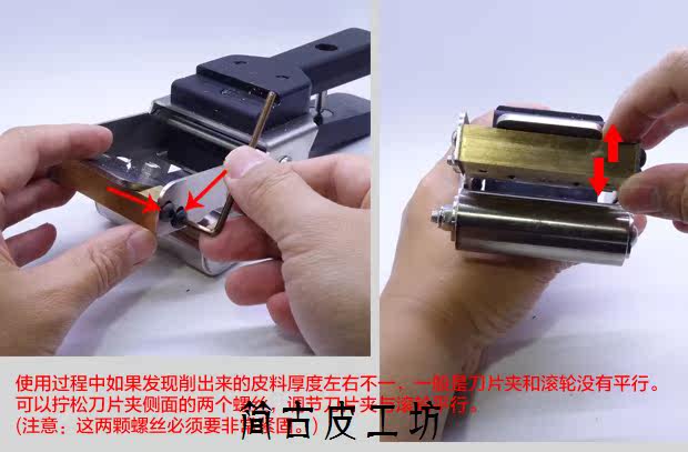 [2、刀片与滚轮应该保持平行,这样削出来才厚度均匀,]