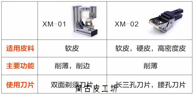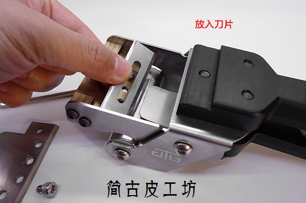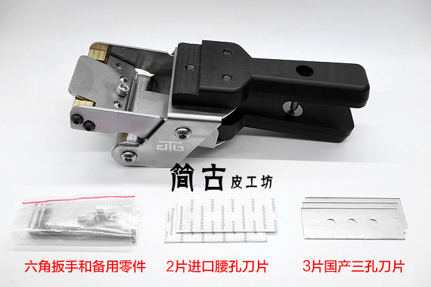 [本机适用刀片是57mm-60mm工业用三孔刀片和腰孔刀片,工业刀片技术很成熟,一把新刀片的锋利度不输任何昂贵的削皮刀,价位基本上就是越贵越耐用。其中][三孔刀片比较薄,适合软皮和中等硬度的皮料,太硬的皮会崩断;腰孔刀片厚度大,不变形,软硬皮都适用。刀片的使用寿命也很长,视频中做完所有的测试(不单止您看到的操作),刀片一直没有换过,一片刀片估计的寿命是普通植鞣革削皮长度2-3米。]
