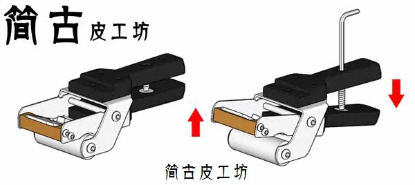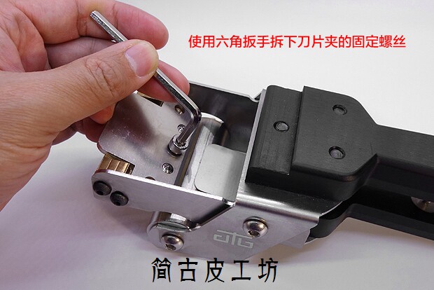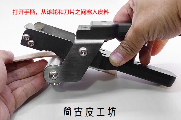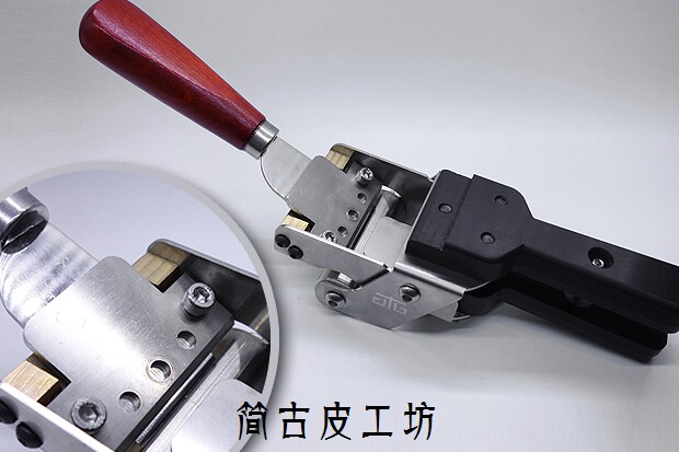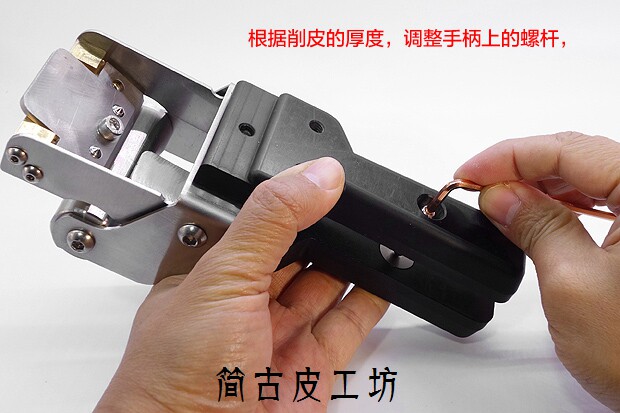 [高硬度皮料,例如枥木、马缰这些皮料的削薄一直是个难题,以往使用的工具就是台面式的手动削薄机,体积大,重量大,需要固定安装。价位都在500以上,并且使用专用刀片,需要磨刀。]