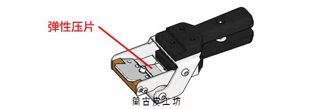 [3、弹性压片是保证皮料贴紧滚轮的部件,]