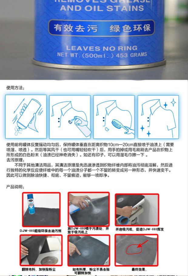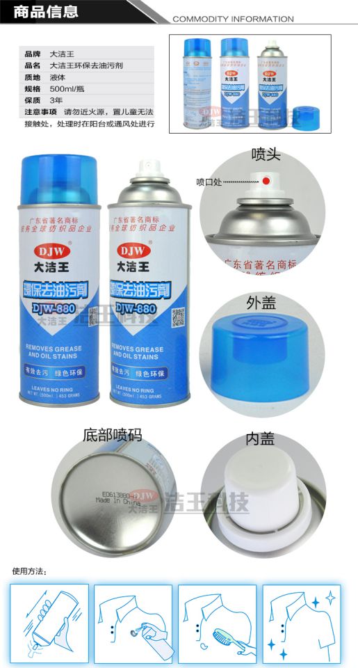 DJW-880 Одежда сухой стирание масла дезодорант, один выстрел, чистый спрей, загрязнение маслом, один спрей, распыление чистой