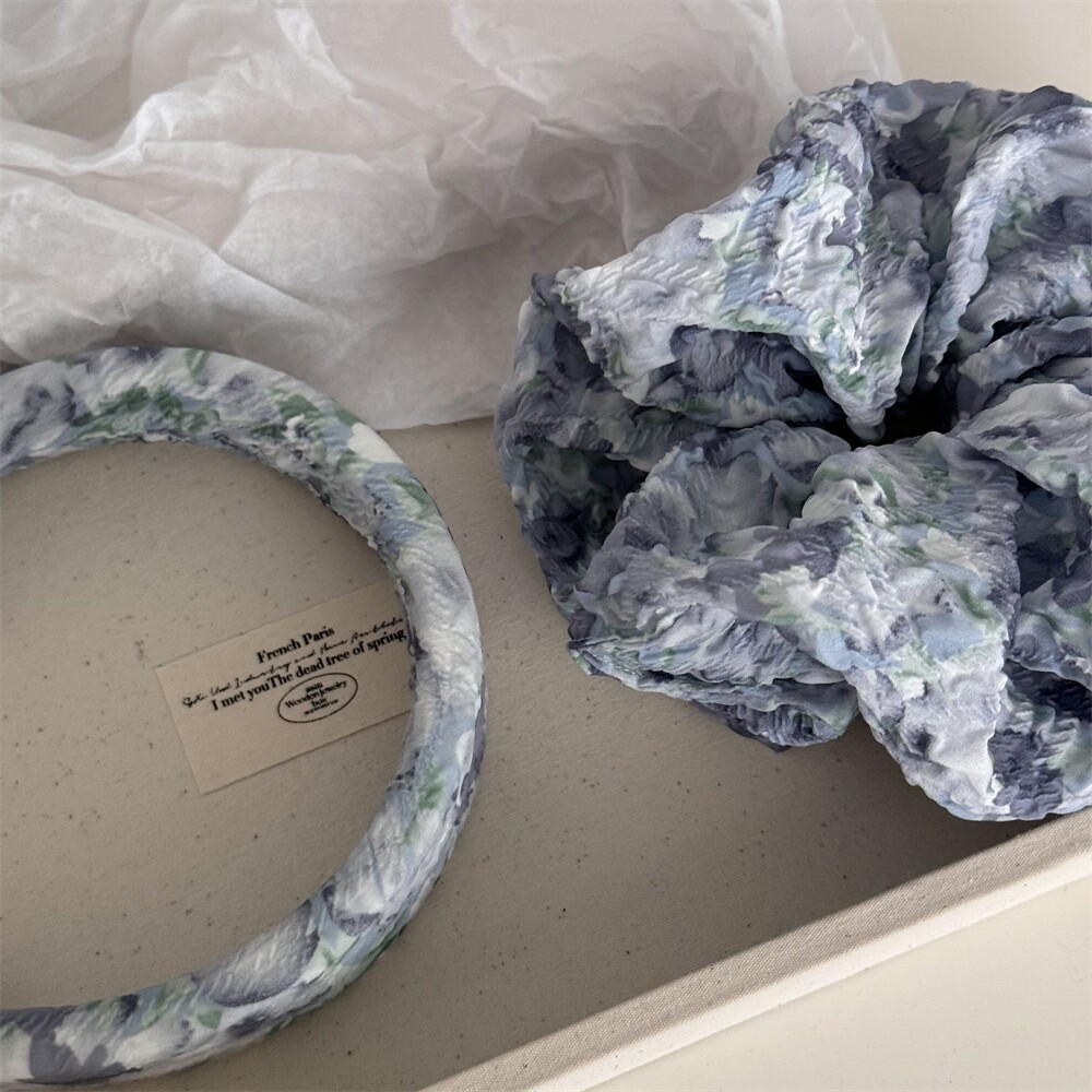 Синее милое косметическое масло, хвостик, ободок, цветочный принт, в цветочек