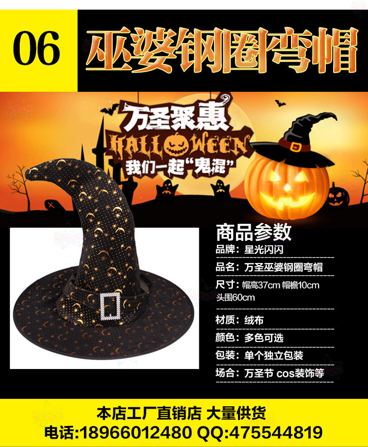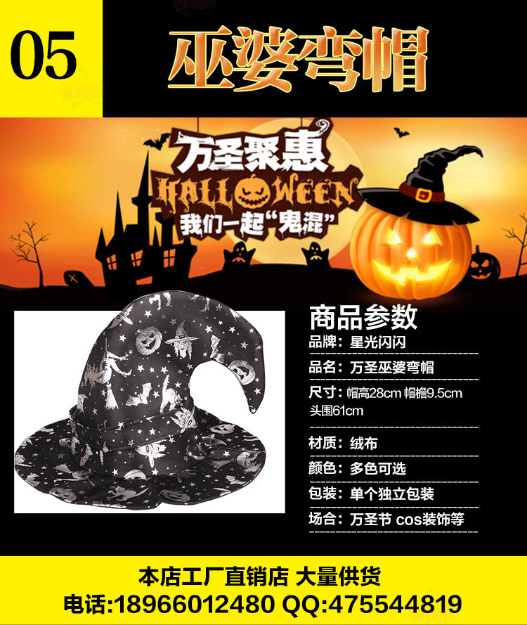 Хэллоуин макияж танец, тыква шляпа шляпа шляпа ведьма ведьма шляпа Полярная лента черная свекла черная шляпа угловой магический мастер шляпа шляпа