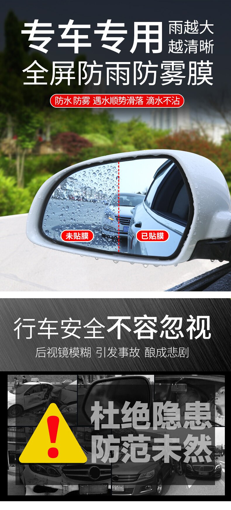 Автозадное зрение -надежная дождевая мембранная анти -ффо -пленка боковая пленка окно HD обратное зеркало Нано -водонепроницаемое пленка Полно -экрановые принадлежности