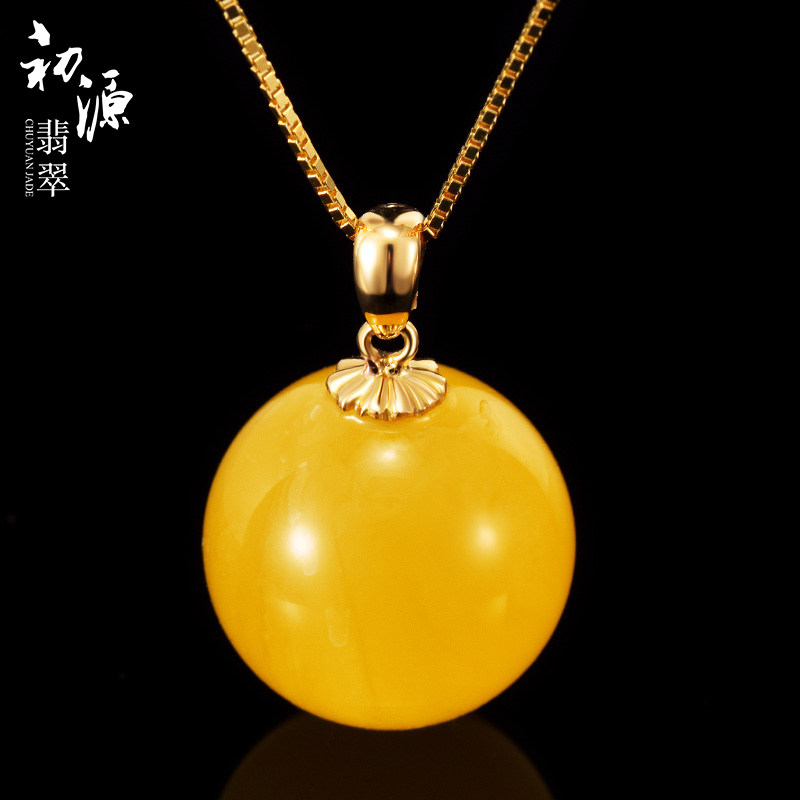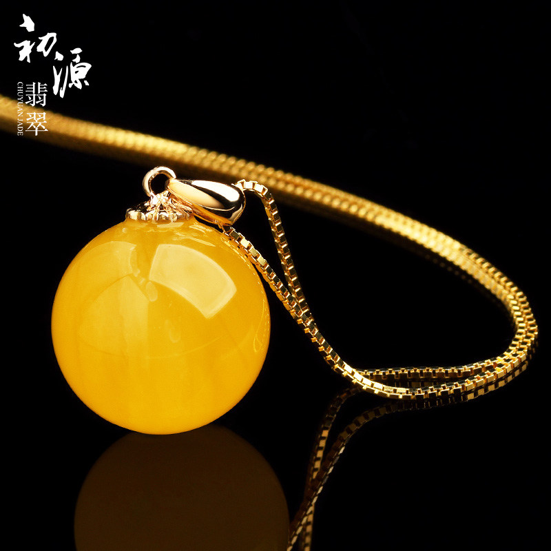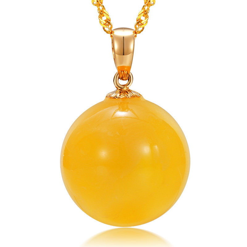 初源 Украшение-шарик из воскового агата, подвеска, янтарные золотые бусины, инкрустация камня, золото 18 карат, женский стиль