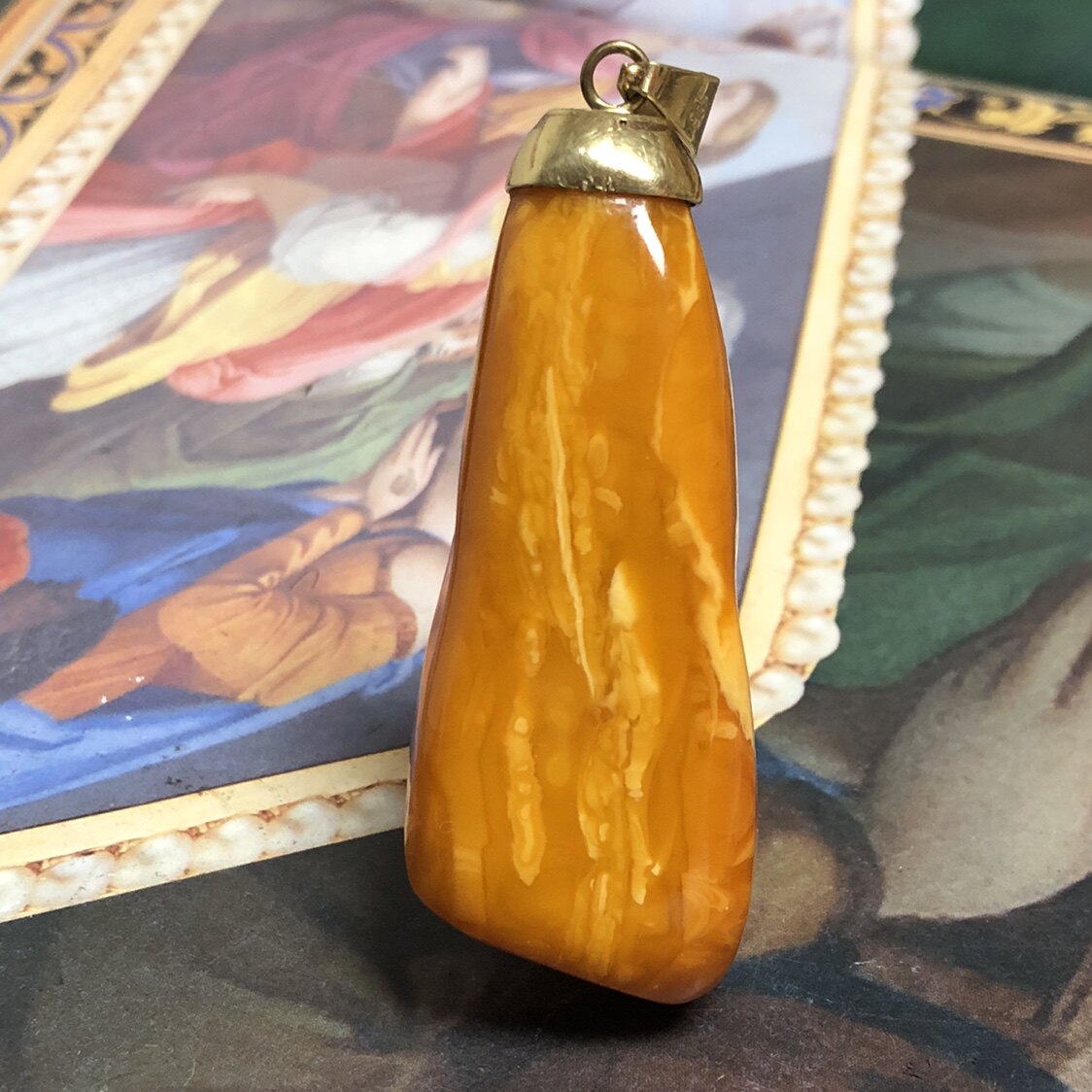 Янтарная подвеска из воскового агата, антикварное ожерелье, цепочка, ювелирное украшение, Германия, 14 карат