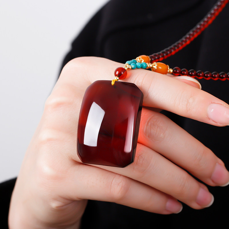 Янтарная подвеска из воскового агата, защитный амулет, янтарное ожерелье, свитер