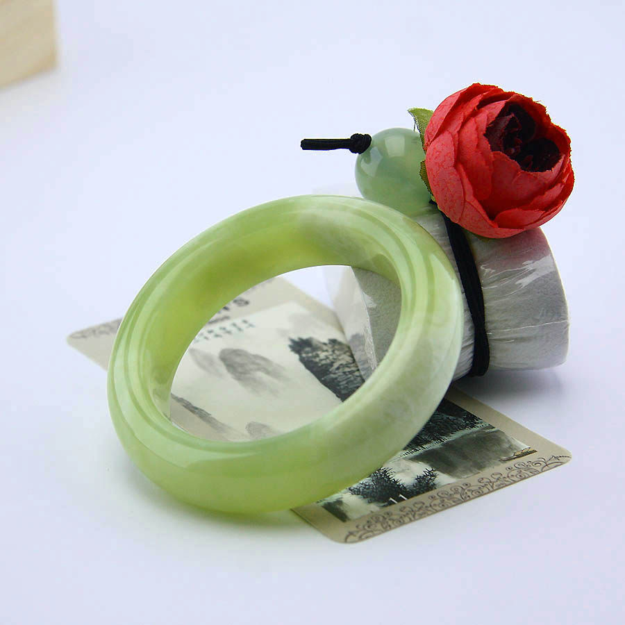 Зеленый натуральный браслет из нефрита, женский стиль