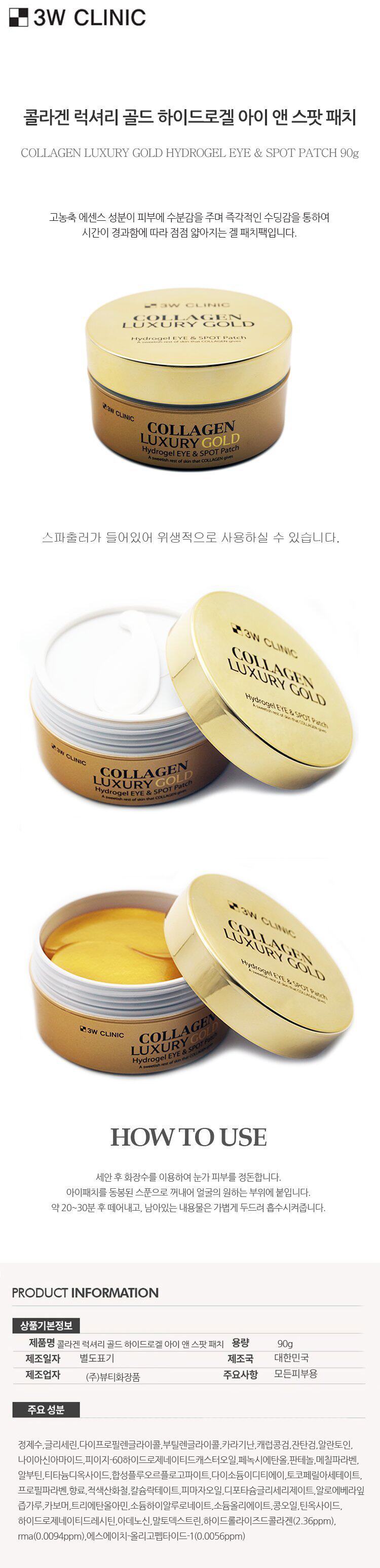 Многофункциональный успокаивающий коллаген, увлажняющая золотая золотая вода, гель, маска для глаз, Южная Корея, 3W, 90г