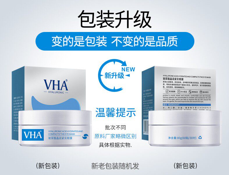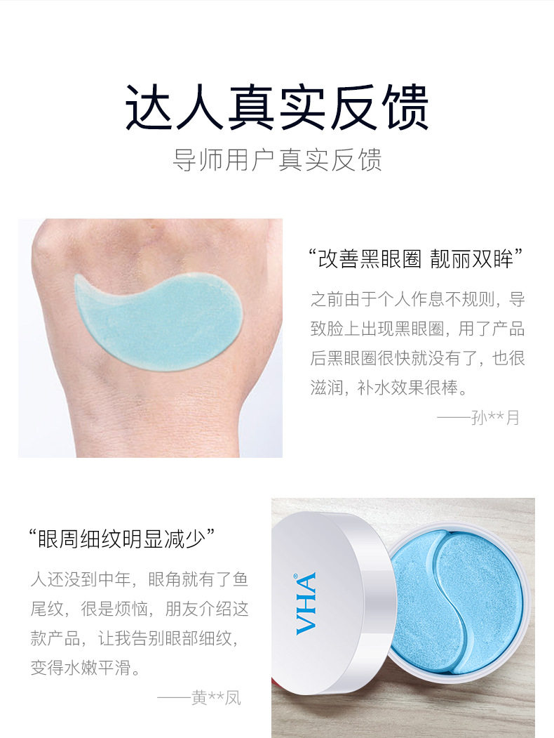 VHA Укрепляющая маска для глаз с гиалуроновой кислотой, мягкая увлажняющая питательная эссенция, 60 штук