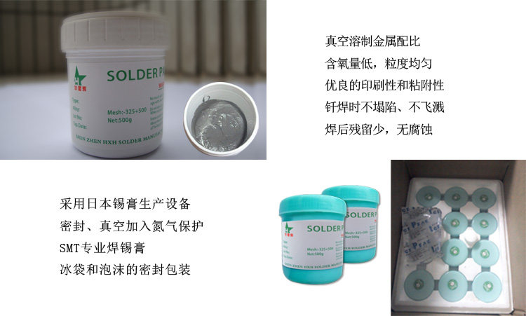| HXHG-63/37A(3#) | 63/37Ведущая жестяная паста3Узел порошокSn63Pb37 | 25μm-45μm | 183 | 220-230 |