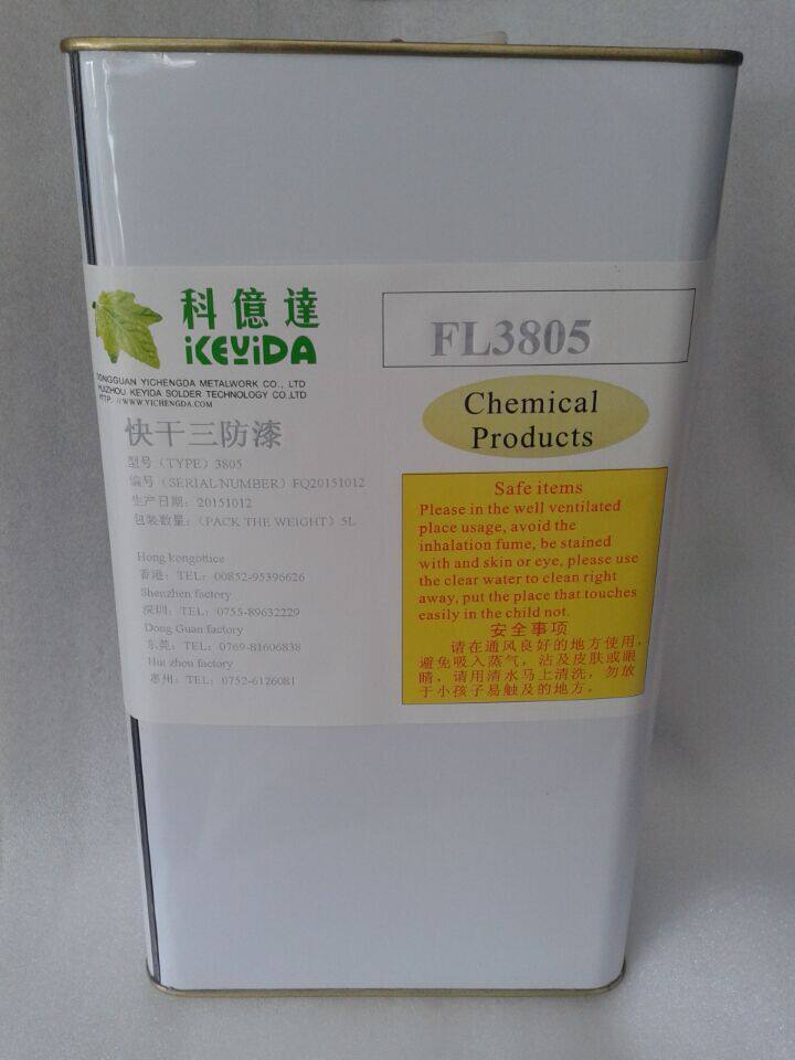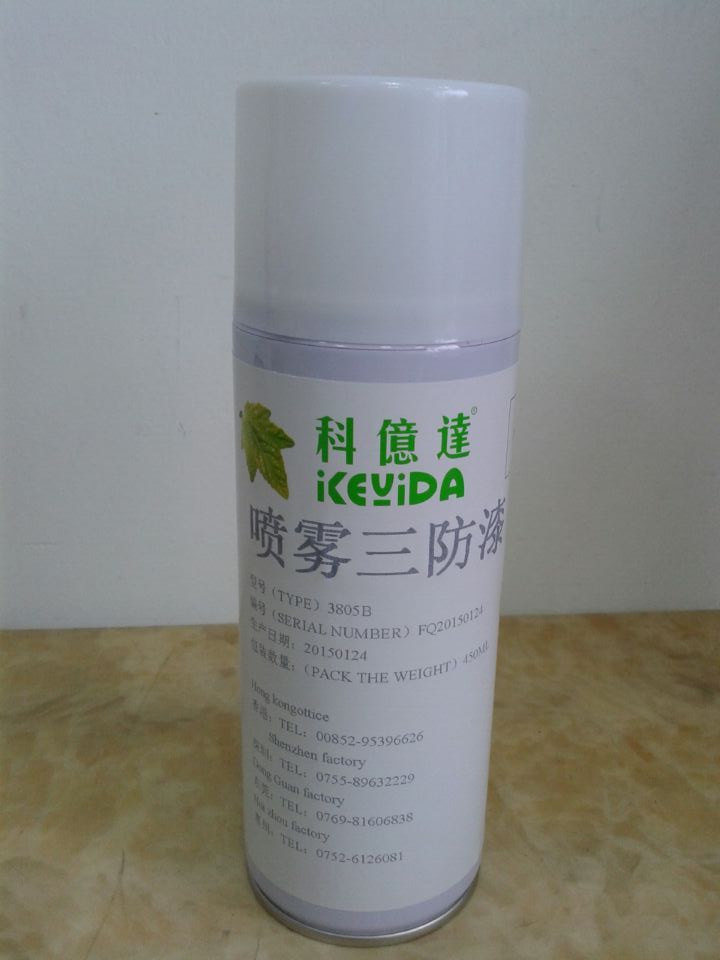 self -spray paint KEYDIA3805B  это защитный клей с водонепроницаемой, изоляцией, растворителями, синтезированными с акрилатными составными материалами головоломки. Продукты подходят для печатной платы в производстве электроники промышленности  линия, металл, компоненты домашнего прибора и другие материалы, такие как адгезия, герметизация и покрытие электронного оборудования.В воздухе есть хорошая поверхностная сухость, а после затвердевания образуется жесткий слой адгезии. Он обладает превосходным ударом по воздействию и сопротивлению вибрации.  защита продуктов.И широко используются для смешанных интегрированных цепей, автомобильных электронных плат управления, электронных плат, авиационных приборов, плат сплоченных схем мягкой печати, платы управления компьютером, промышленные платы управления, полупроводниковую защиту кристаллических линий, контроллеры домашних приборов и другие электронные детали. Избирательные защитные продукты. Полем