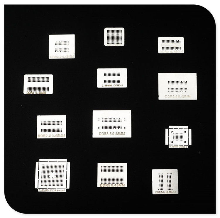 Графическая дарма Ведики, BGA упаковочная память, видео память о ноутбуке 12 комплектов из стальной сетки BGA Plant Plant Plant!Этот набор стальной сетки может подходить для общего второго генерации и третьей генерации BGA упаковочной памяти, видео памяти видеокарты, интегрированной видео памяти на материнской плате ноутбука и видео память на видеокарте ноутбука, а также некоторые обычные BGA упаковочные сетевые карты и мощные чипы завода бусины!