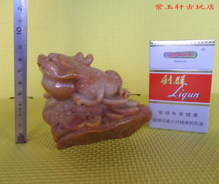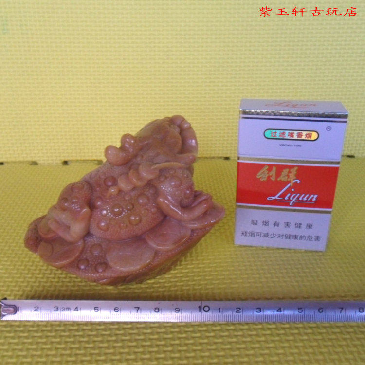 размер: длинная*ширина*Высота: 12*9,8*8,3 см, чистый вес: 727 грамм.Полный внешний вид, рисунок золотой жабы, схема денег, жемчужная земля,Управление резьбой,Нравиться,Резные фигурки, высокая невеса, плотная конструкция, маслянистое мясо, сильный желтый восковый цвет и ярко -красные ремни в форме ремня, естественное плавное, хорошее качество.