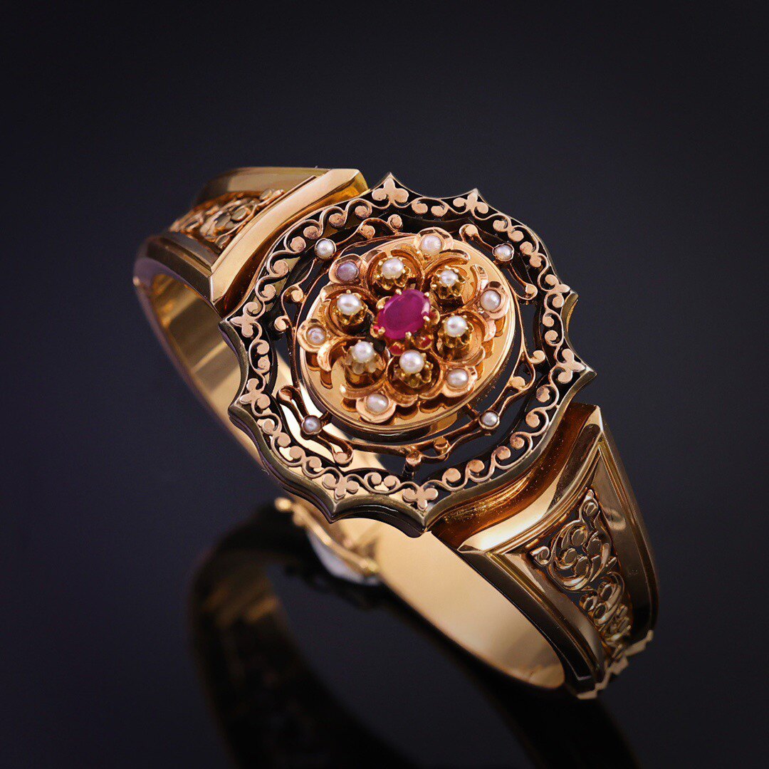 LG1912 девятнадцатого века 18K золото вареное рубиновое браслет