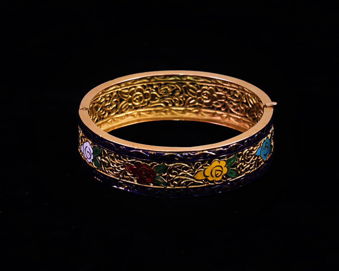 LG2840 девятнадцатого века 18K Золотая цветочная эмаль браслет