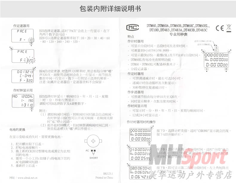 Dingerzhi/Ultrak Electronic Spectwatch Большой шрифт с тремя рядами спортивного таймера DT483B
