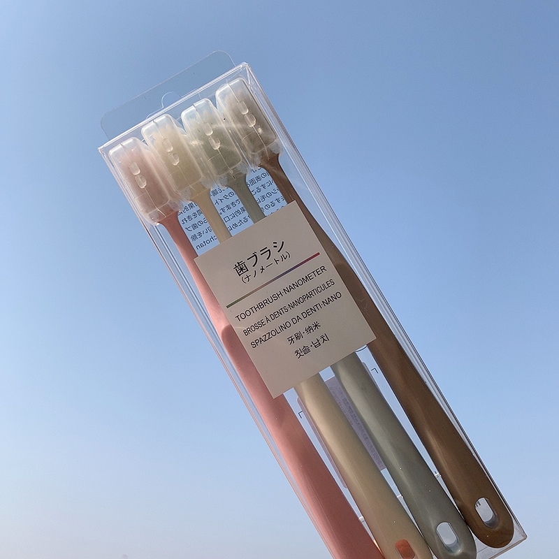 Пополнение четырех хорошо упакованных мягких зубных щетков.