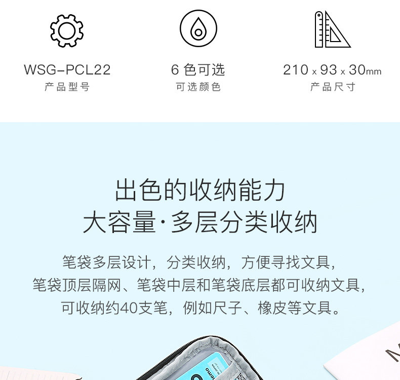 Японский многослойный вместительный и большой двухэтажный пенал с молнией для школьников